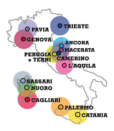 Nel biennio 2022/2023 SHARPER si svolgerà in 14 città italiane: Ancona, Cagliari, Camerino, Catania, Genova, L’Aquila, Macerata, Nuoro, Palermo, Pavia, Perugia, Terni, Sassari e Trieste.