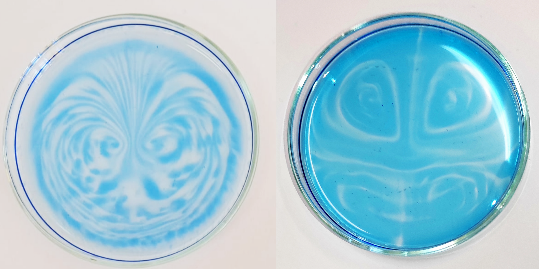 L’interazione tra due sostanze in soluzione può innescare comportamenti complessi e inaspettati che, in opportune condizioni, si manifestano in affascinanti strutture ordinate. Perturbando il sistema con vibrazioni controllate si osservano nuovi e singolari pattern.