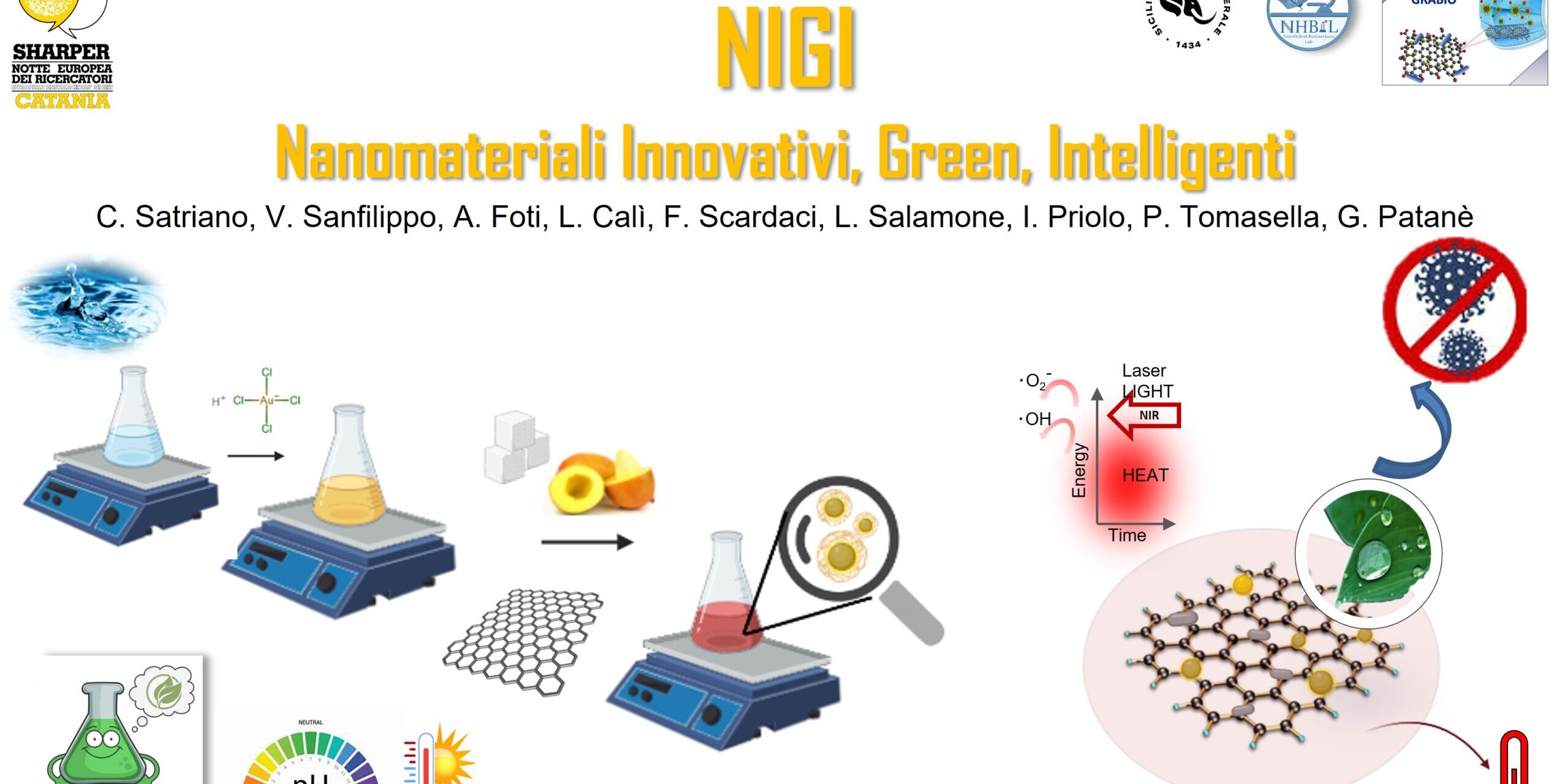Esperimenti di chimica green per fabbricare nanocompositi smart ed ecosostenibili basati su particelle metalliche, polimeri e grafene. Esempi di caratterizzazione delle loro proprietà plasmoniche, foto-termiche/catalitiche, e carattere idrofilico. A cura di C. Satriano