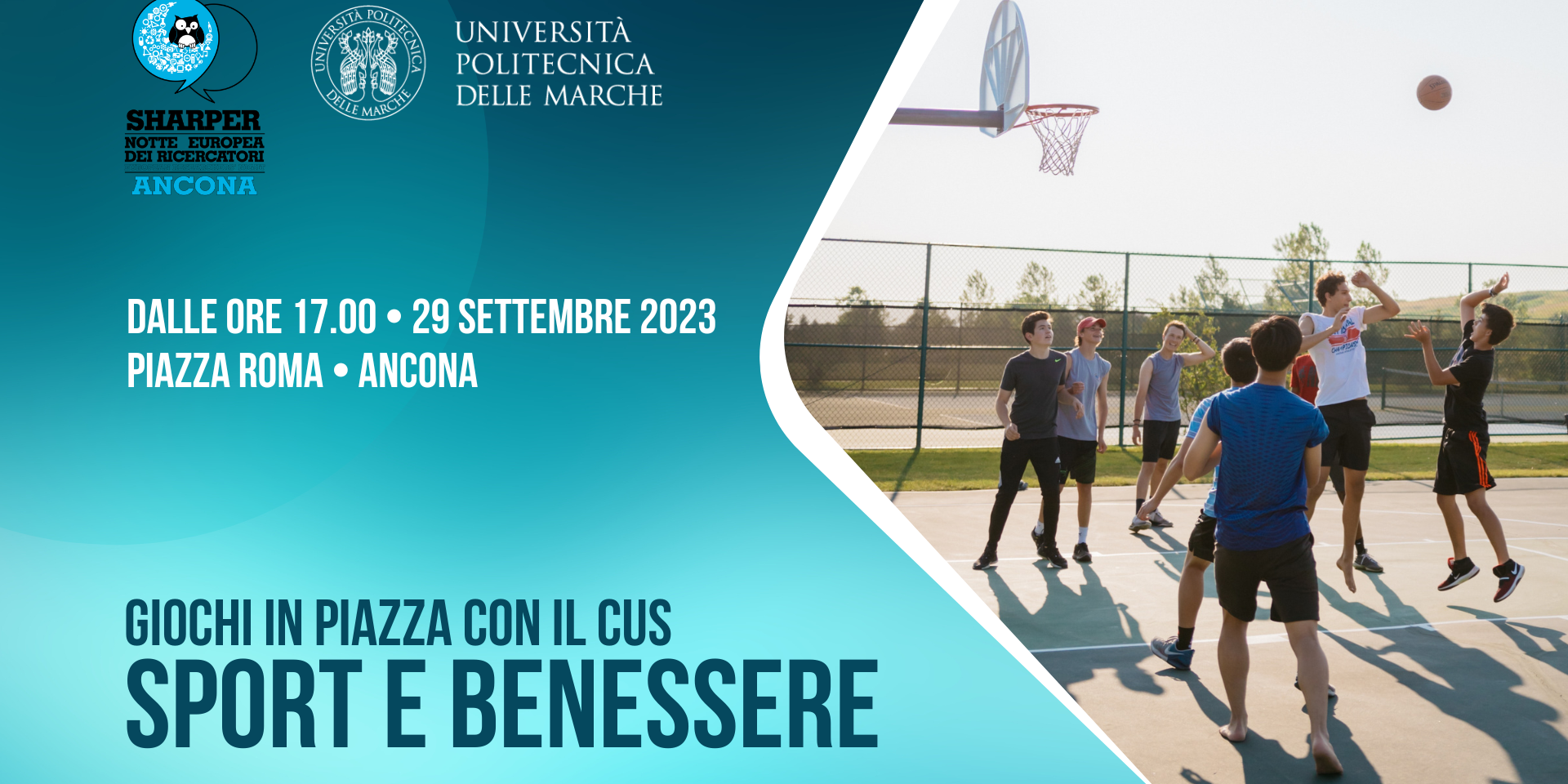 Attività ludico-sportiva in piazza con vari sport presenti per mostrare come l’attività fisica porti al benessere psicologico e fisico.