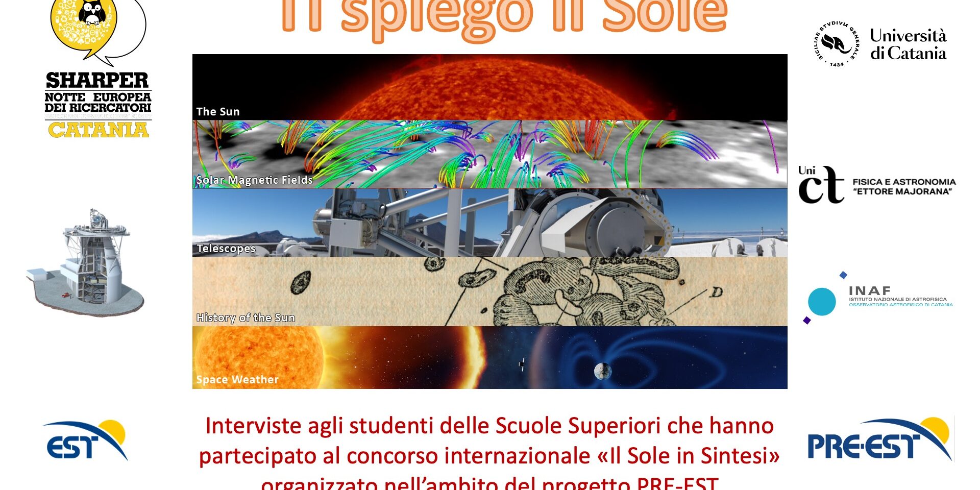 Interviste ai concorrenti siciliani del concorso internazionale “Il sole in Sintesi”, che ha visto sfidarsi 767 teams di studenti della scuola superiore sulla produzione di un’infografica dedicata al sole e ai suoi strumenti di osservazione. A cura di F. Zuccarello