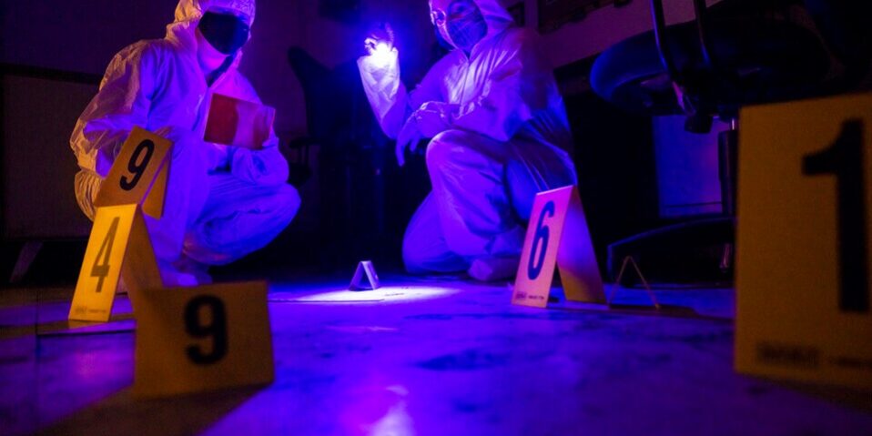 Descrizione foto: evidenziazione tracce latenti mediante luci forensi.