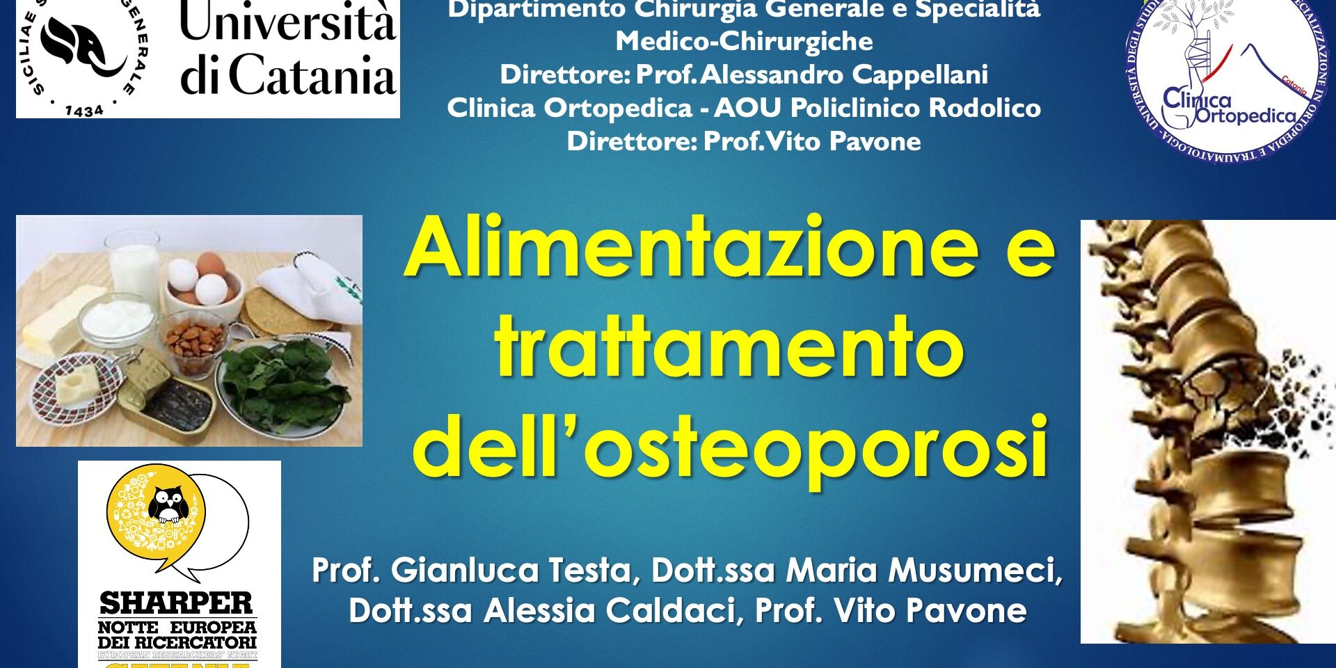 La dott.ssa Maria Musumeci mostrerà come la dieta possa influenzare il metabolismo osseo e sia importante come fattore correttivo iniziale nel trattamento della osteoporosi post-menopausale e senile.